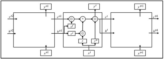 In the LSTM neural network, the input time series are xt−1, xt, xt+1; Transmission state that changes slowly: c; Fast changing transmission state: h; The predicted time series of output: yt−1, y t, yt+1; Gating state of forgetting gate, input gate and output gate: zf, zi, zo, and the input data are converted to between (0–1) through Sigmoid function; z converts the data at the corresponding time to between (−1–1) through the tanh activation function.