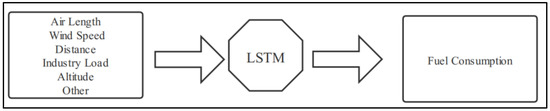 The fuel consumption of aircraft can be affected by many factors during flight. Therefore, a neural network which is more sensitive to previous information should be sought when choosing a neural network for aircraft fuel prediction. LSTM neural network is a special RNN. Through the design of a memory storage unit, it can avoid gradient disappearance and explosion effectively. Therefore, this experiment builds a fuel consumption prediction model based on LSTM neural network, which can describe the long-term and short-term characteristics of fuel consumption changes smoothly. The structure of the LSTM neural network is shown in Figure 2.