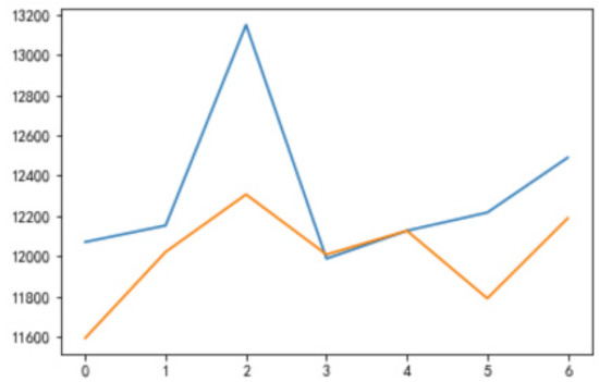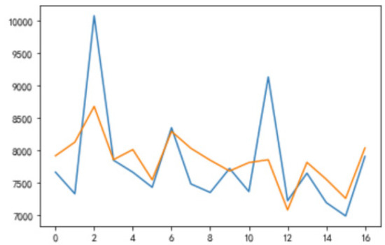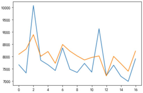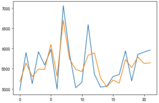 After iteration training, the data prediction analysis of the test set is obtained. In Figure 5, Figure 6, Figure 7and Figure 8, shows the blue line represents the fuel consumption data predicted by the model, and the red line represents the actual fuel consumption. The larger the vertical intercept of the two lines, the larger the prediction error. It can be seen from the figure that most of the daily fuel consumption predicted by the fuel consumption analysis model matches the actual results. It can be seen from Figure 5, Figure 6 and Figure 7 that the simulated data of A319 is closer to the real fuel consumption, while the values of A320 and A330 are only partially similar. The possible reason is that in the process of neural network training, the amount of data of A319 is much larger than that of A320 and A330, which leads to higher accuracy of the model trained by A319.