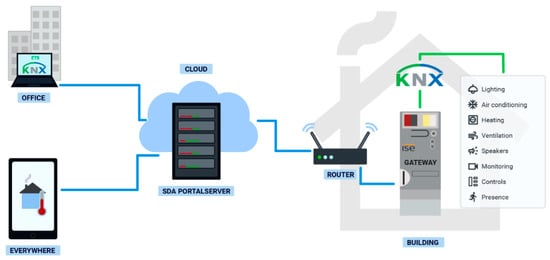 Security connection to the gate was created with the use of internal networks or external VPN connections. This data was saved on a computer with the following specifications: Intel i5-760CK CPU 3.9 GHz 16 GB RAM using the Windows Server 2019 Standard equipped with SSD NVMe 250 GB, 250 GB drives SSD 120 GB, 250 GB and a 1TB HDD. To import the data KNX Data extractor, a C# program was prepared. Through this, importing, decoding, and data was saved to an MS SQL server.