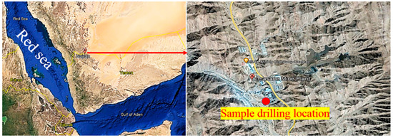 Core drill location, Najran, Saudi Arabia (images were captured using open source Google Earth Pro; 1600 Amphitheatre Parkway, Mountain View, CA 94043, USA).