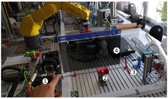 Hand gestures of the user (a) are used by the HPU. This way the HPU can react to specific gestures and allow users to point to an analysis target. Marker (2) was placed on the model’s body close to the bearing of the rotating element (3). Another task of the HPU is constant monitoring of the marker’s placement. Hologram (4) can be moved using the user’s gestures. Its task, in this case, was a direct display of a frequency of oscillations with the highest amplitude.
