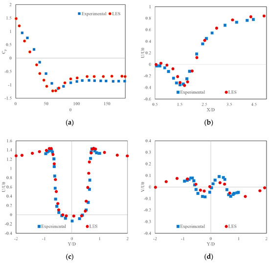 - Parnaudeau, P.; Carlier, J.; Heitz, D.; Lamballais, E. Experimental and numerical studies of the flow over a circular cylinder at Reynolds number 3900. Phys. Fluids 2008, 20, 085101. [Google Scholar] [CrossRef] [Green Version]