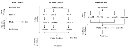 Overall structure of single, ensemble, and hybrid models. Adapted from [1].