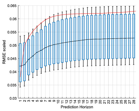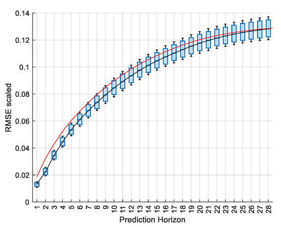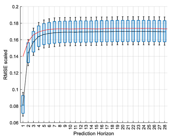 In this manner, we compute the RMSE for each step-ahead prediction and sum up those values. In order to compute this criterion, a forecasting period must be used. To differentiate between the forecasting period used in MOGA design and the forecasting period employed in model validation, two notations will be introduced: and . Notice that the latter is computed in a time series that is not employed for model design.