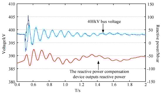 The investigation found that about 10 min before the accident, there had been a similar oscillation phenomenon at the Hornsea wind farm. The voltage of the 400 kV high bus voltage of the wind farm dropped 2%, but it did not cause the disconnection of the wind turbines. Figure 3 shows the response of 400 kV bus voltage and reactive power compensation device at that time [2].