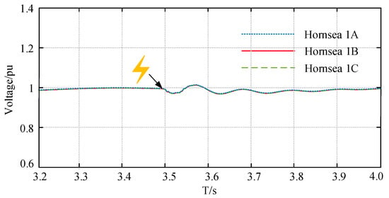 It can be seen that the terminal voltage of Hornsea 1A has not been stabilized in a short time after the Hornsea 1B and 1C are disconnected.