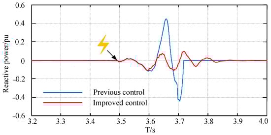 After improving the control strategy of the grid-side converter, it helps to avoid large oscillations of reactive power and restore the voltage to a stable state in a short time.