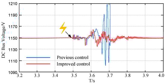 From Figure 14, it can be seen that the DC bus voltage oscillation is obvious before using the strategies mentioned in this paper, and it cannot be stabilized at the rated value after a period of time. After using the strategies mentioned in this paper, the oscillation amplitude of DC bus voltage is significantly reduced, which provides conditions for the normal operation of grid-side converter.