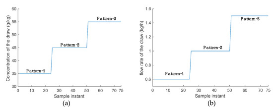 In this scenario, the salinity operational conditions are fluctuated, including the salinity flow rate and concentration, as shown in Figure 4.