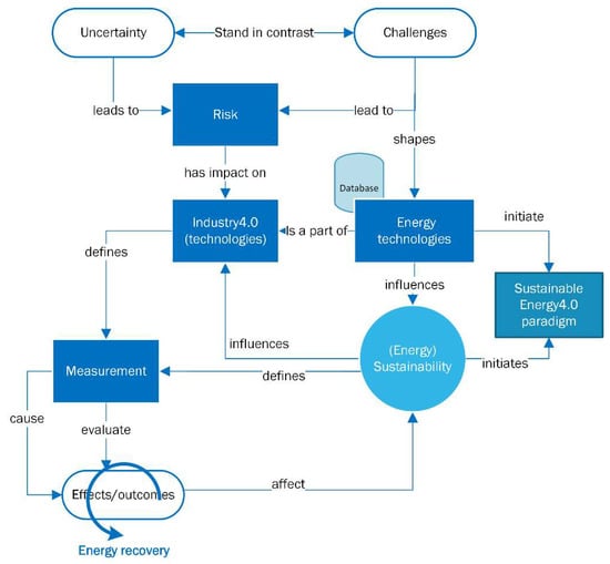 Considering these interdependencies between the components of the Energy 4.0 paradigm (Energy Sustainability–based Industry 4.0), Figure 3 thus complements the identified research gap in Figure 2.