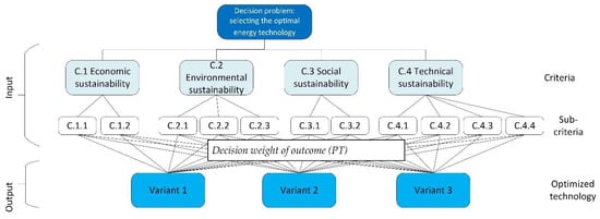 In the era of Industry 4.0, there is also concern about how to reduce energy consumption, ensure CO2 minimization and cost savings in oder to enhance energy efficiency and minimize disruptions with regards to I4.0 technologies. This concern is also aimed at how to make a rational decision to choose the right energy technology. Figure 2 provides a framework for establishing the findings from the literature presented in Section 2. Understanding the interactions of Industry 4.0, sustainability and energy efficiency is a cutting-edge research topic. The present study aims to contribute to this research by explaining how Industry 4.0 may contribute to energy sustainability from decision making point of view using the PT.