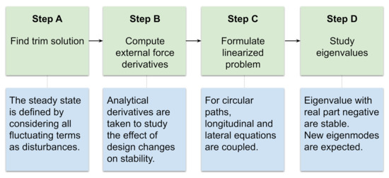 Finally, the stability of the system can be studied by looking at the eigenvalues of the linearized system. The procedure to study stability is summarized in Figure 1.