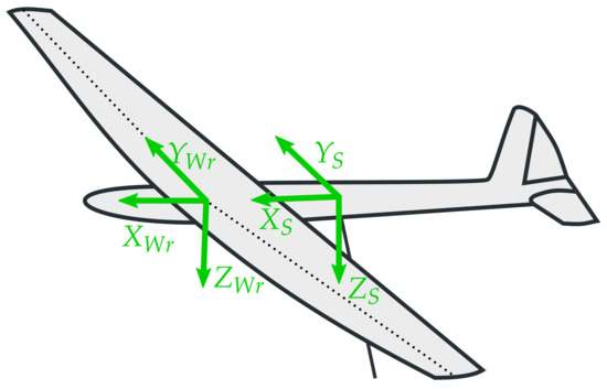The coordinate system of the left wing can be defined in similar manner. The rotational matrix from to is