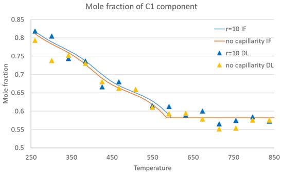 The effect of capillarity can also be detected in Figure 3. It can be easily referred that the two-phase region has been extended if capillarity is taken into account, while a higher temperature is needed for the mixture entering the single (vapor) phase region. This finding meets exactly the conclusion in [37] that the bubble point curve is suppressed with capillarity while the dew point curve is expanded outward with dew point pressure decreasing (and increasing) in the lower (and upper) branch of the dew point curve in the phase envelop. Thus, the proposed TINN configuration is proven to be effective in both phase equilibrium predictions and study on the effect capillary pressures.