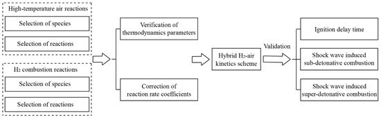Process of modelling the hybrid H2–air kinetic scheme.