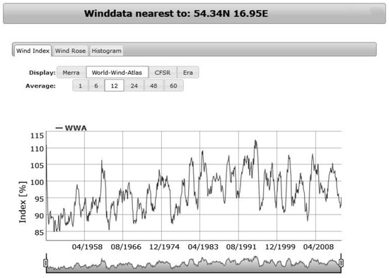 The following analysis used the results of the wind measurements performed in future locations for two wind farms in northern Poland. The two future farms are separated by a distance of over 100 km. Accuracy and correctness for the validation and analysis of measurement data are key determinants for the applicability of the given location in terms of its wind potential. The basic objective of the final report from wind measurements is the summary of the period of measurement and presentation of the results in graphic or tabular form. Construction of wind turbines with the tower height of 120 m above the ground was assumed. As a result of the performed measurement campaign, average wind speeds were obtained, listed in Table 2.