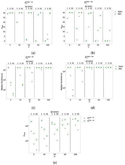 An alternative to the above is the following. Whenever for some EV v and time step t, one can add the violated Inequality (12) not only for time step t but for all time steps . The intention here is to possibly reduce the number of needed resolving iterations; however, clearly the size of the LP formulation increases more quickly. Preliminary experiments indicated that, indeed, this variant performed better in practice in most cases. Therefore, we apply it in all our experiments documented in the remainder of this work.