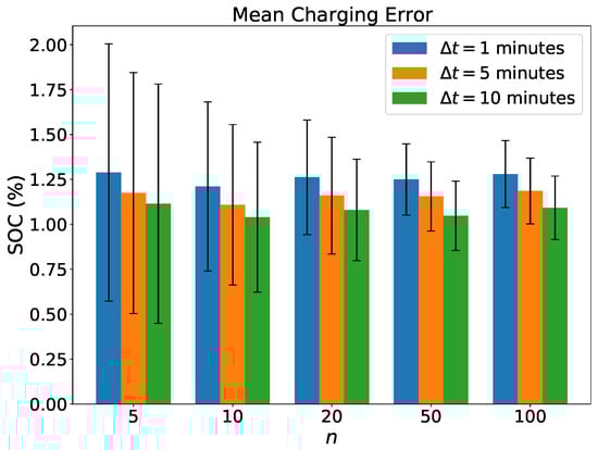 The number of electric vehicles (EVs) is rapidly increasing. At the end of 2020, there were around 10 million EVs on the world’s roads, and the number of EV registrations increased by 41% in 2020 [1]. The uncontrolled charging of this rising number of EVs, together with an increasing share of renewable energy, imposes significant challenges for the stable operation of the power grid in terms of the power quality, voltage stability, peak demand, and reliability [2]. In addition to further measures, like time-of-use prices [3] and dynamic pricing schemes [4], smart charging [5,6] is considered a promising strategy to mitigate these issues. Smart charging refers to the coordination of the charging of a number of EVs in an intelligent way. Numerous approaches for smart charging, considering different objectives and different constraints have been proposed in the literature [7,8,9,10,11,12,13,14].