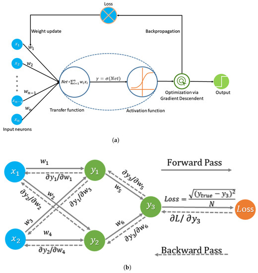 Gradient descent is commonly used to minimize an objective function with a combination of varied neural network weights . The minimization ends at a valley when following the downhill direction of the surface slope of the objective function. This minimization process updates the involved weights in the opposite direction of the gradient of the objective function with an assigned learning rate ; a hyperparameter controls how much the model weights are updated in response to the estimated error at each iteration. A small means a long training process that could get stuck, whereas a large value for the sake of accelerating the training process may prevent convergence due to the large fluctuation of loss function.