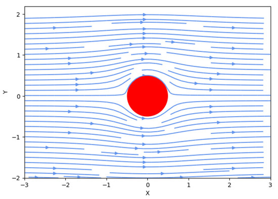 One of the most basic problems in elementary fluid dynamics is to find the velocity potential and streamlines associated with uniform irrotational flow past a cylindrical obstacle. This benchmark problem for stationary, inviscid, and incompressible flow has obvious application to simplified problems in aerodynamics. The test configuration considers a solid cylinder centered at (0, 0) with the radius