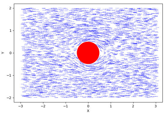 Figure 8 show the streamline and velocity field predicted by the employed neural network. The velocity magnitude exhibits two lines of symmetry. A line drawn horizontally through the cylinder divides the velocity magnitude into upper and lower sides that are geometric mirror images. Note that the velocity itself is not symmetric about this line. These results lead to the conclusion that the employed neural network has excellent capacity to predict this flow phenomenon with high accuracy.
