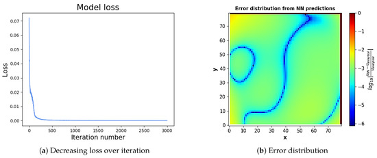 32)) were incorporated into the designed neural networks. After training, the loss history and prediction error distribution are shown in