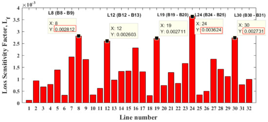 Figure 6 shows the estimated loss sensitivity factor for all the lines as described in the previous section and the candidate buses are selected to be buses 8, 30 and 24, considering maximum DGs to be three in line with the siting/selection criteria previously described.