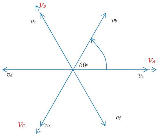 The symmetrical six-phase supply voltages of six-phase IM are expressed as [18,44]: