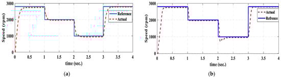 Speed–time characteristics: (a) with 3-phase inverter and transformer, (b) with 6-phase inverter.
