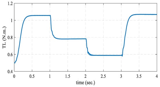 Figure 6, Figure 7, Figure 8, Figure 9, Figure 10, Figure 11 and Figure 12 show the simulation results of the system under study. There are two studies cases; the first case is the operation from a three-phase inverter and three-to-six phase transformer (TITST), the second case is the operation using a six-phase inverter (SI). Figure 6 shows the speed variation for both cases with PID (kp = 0.7, ki = 0.15, kd = 0.02). This figure clearly shows the difference between the two cases in the response of the motor speed to the changes that follow the reference speed, and this clearly shows in the fourth period, where a decrease in speed occurs for the operating system with SI up to 240 rpm, while in the proposed system it does not exceed 8 rpm.
