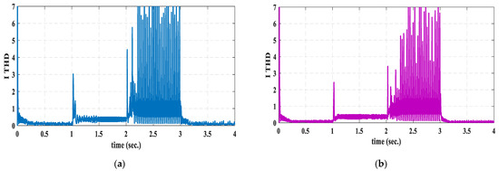 THD in current–time characteristics: (a) 3-phase inverter and transformer, (b) with 6-phase inverter.