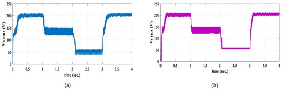 Stator voltage–time response: (a) with 3-phase inverter and transformer, (b) with 6-phase inverter.
