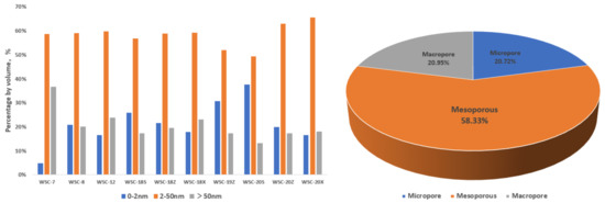 4.2. Characteristics of Pore Size, Pore Volume and Specific Surface Area