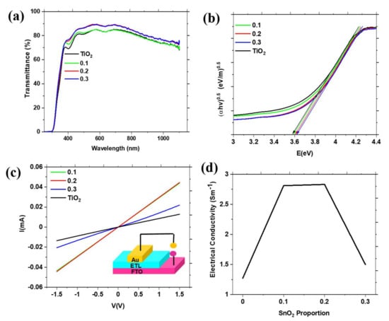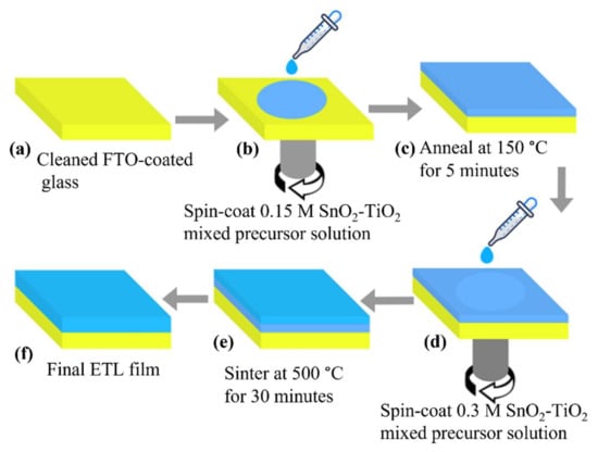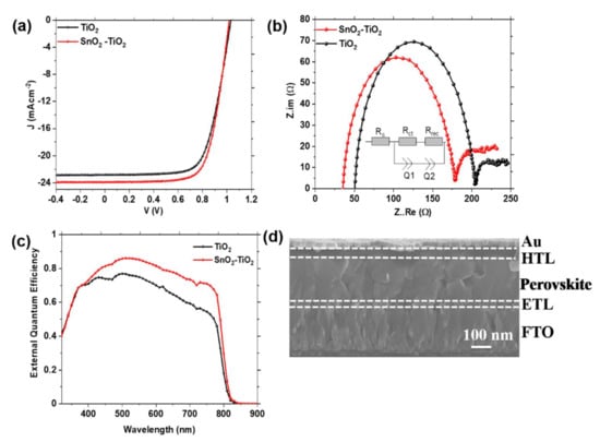 - Guo, H.; Zhang, H.; Yang, J.; Chen, H.; Li, Y.; Wang, L.; Niu, X. TiO2/SnO2 Nanocomposites as Electron Transporting Layer for Efficiency Enhancement in Planar CH3NH3PbI3-Based Perovskite Solar Cells. ACS Appl. Energy Mater. 2018, 1, 6936–6944. [Google Scholar] [CrossRef]