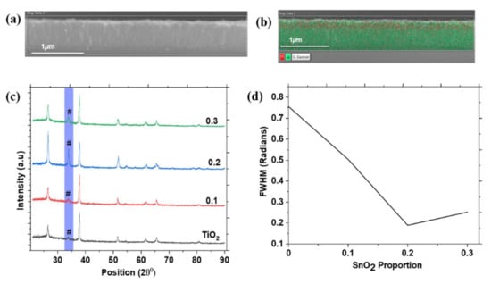 - Akurati, K.K.; Vital, A.; Hany, R.; Bommer, B.; Graule, T.; Winterer, M. One-step flame synthesis of SnO2/TiO2 composite nanoparticles for photocatalytic applications. Int. J. Photoenergy 2005, 7, 153–161. [Google Scholar] [CrossRef] [Green Version]