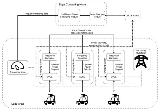 7]. It is important to notice that this very strict time constraint has to be guaranteed just for frequency regulation functions, while other smart-charging functionalities (e.g., the computation of nominal power setpoints) have much larger time constraints, that are typically in the order of minutes. Installing a frequency meter capable of the above-mentioned time requirements inside each charging station would imply very high costs. However, by leveraging the new cellular communication technologies (e.g., 5G), it is possible to install just one (or few, for redundancy) frequency meter in each load area, and then spread the information to the other charging stations with negligible delay, thus matching the strict time requirements for the service.