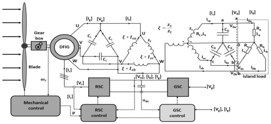 The considered system of DFIG generator of a wind turbine in islanded grid operation.