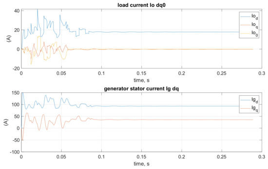 Load current and generator stator current waveforms in dq coordinates for protection a.