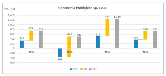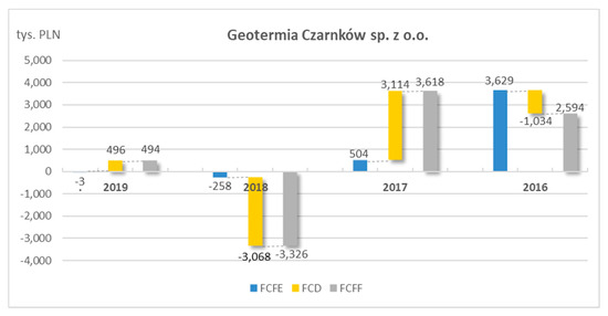 FCFF cash flows generated by Geotermia Mazowiecka S.A. in 2016–2019. Source: Own study on the basis of: [53].
