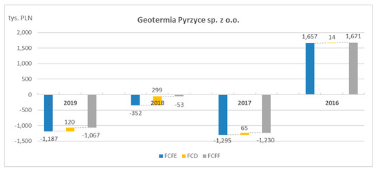 FCFF cash flows generated by Geotermia Pyrzyce Sp. z o.o. in 2016–2019. Source: Own study on the basis of: [54].