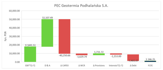 Shaping of FCFF, FCFE and FCD flows and the components affecting them in PEC Geotermia Podhalańska S.A. (PLN thousand).