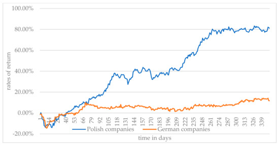 - markedly greater increases in abnormal cumulative rates of return from shares of companies from the food sector in Poland than in Germany were caused by the fact that this sector plays a more important role in Poland than in Germany. Even during the coronavirus pandemic is considered by stock exchange investors on the Warsaw Stock Exchange as relatively stable and showing good prospects for the future, which was determined first of all by the increasing domestic and foreign demand for food products,