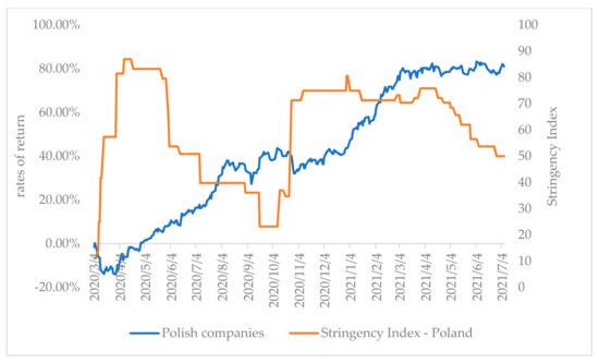 - there is no evident interdependence between changes in the Stringency Index in the investigated period and changes in abnormal cumulative rates of return from shares of companies from the food sector in Poland or in Germany. It may be assumed that changes in rates of return on the market were caused to a greater extent by behavioral aspects, concerns of investors and their irrational decisions rather than actual changes in the economy, as well as restrictions imposed by the governments. Investors followed their emotions, instincts and personal beliefs. In their actions, decisions and financial behavior they were not always rational and in turn their emotions and mood had a huge impact on the stock market.