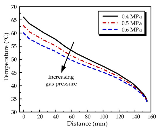 3.3. Influence of Gas Pressure on Temperature Distribution
