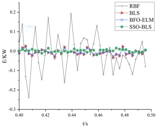 It can be seen from Table 2 that the modeling accuracy of the RBF algorithm is relatively poor, and the BLS and BFO-ELM algorithms are close to the modeling progress, but the BFO-ELM performance is better. The modeling performance of the SSO-BLS algorithm is the best and the error is only 0.038.