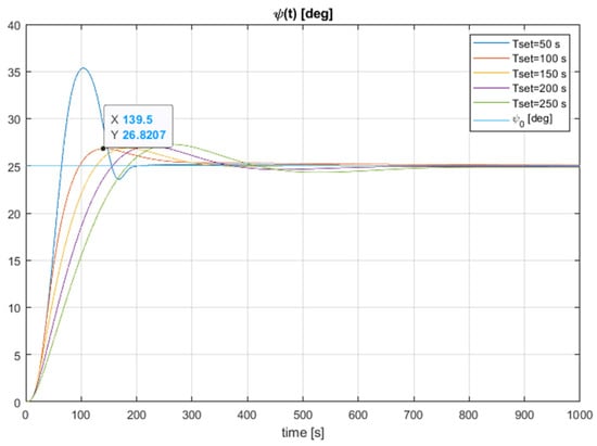 Figure 2, due to the robustness of this parameter, its nominal selection (the settling time 150 s) should ensure sufficiently good control performance for a real ship.