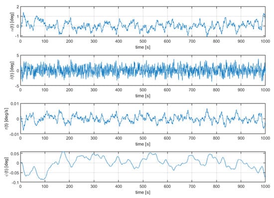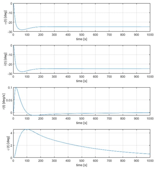 The noteworthy fact is that the maximal heading angle deviation is about 5 degrees. The steady-state value of the heading angle (not entirely shown in this graph) is equal to zero.