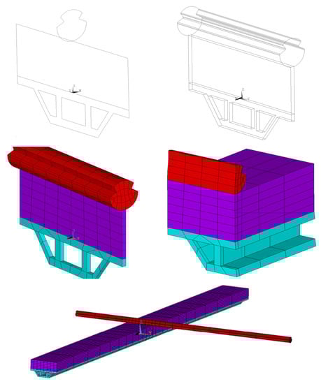 - The FEM model included contact strips and contact wire in accordance with the testing requirements. Due to the symmetry, one contact strip with the corresponding contact wire was modeled. The FEM model was made as 3D, taking into account nonlinear finite elements of the hexahedral coupled field type (thermal-mechanical–electrical).