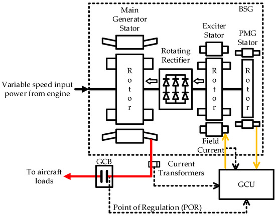 A brushless synchronous generator (BSG) consists of three stages: a main generator, an exciter, and a permanent magnet generator. A BSG is the most commonly used aero-generator because brushless excitation is achieved by the application of the exciter, which improves the service life of the synchronous generator [